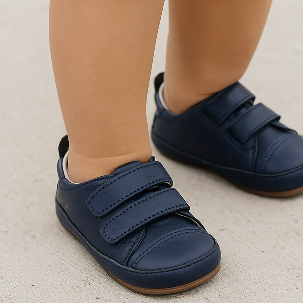 Finished with the signature SKEANIE logo, these navy leather trainers combine effortless style with practical comfort. Whether it’s their first steps at home or their first adventure outdoors, these shoes deliver the support and protection tiny feet need—season after season.