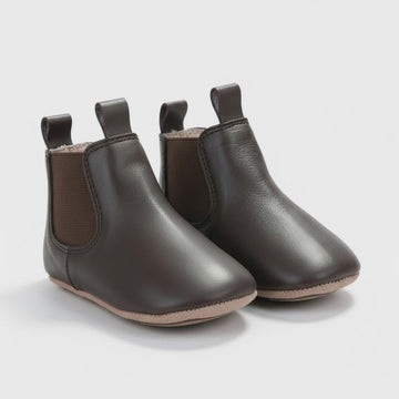 Snug, secure, and stylish - your little one is ready to explore the world with SKEANIE first/pre walker boots! Hand-made with buttery-soft genuine leather, these chocolate brown boots feature elasticised sides and removable insoles for a personalised fit. Let your child's adventures begin!